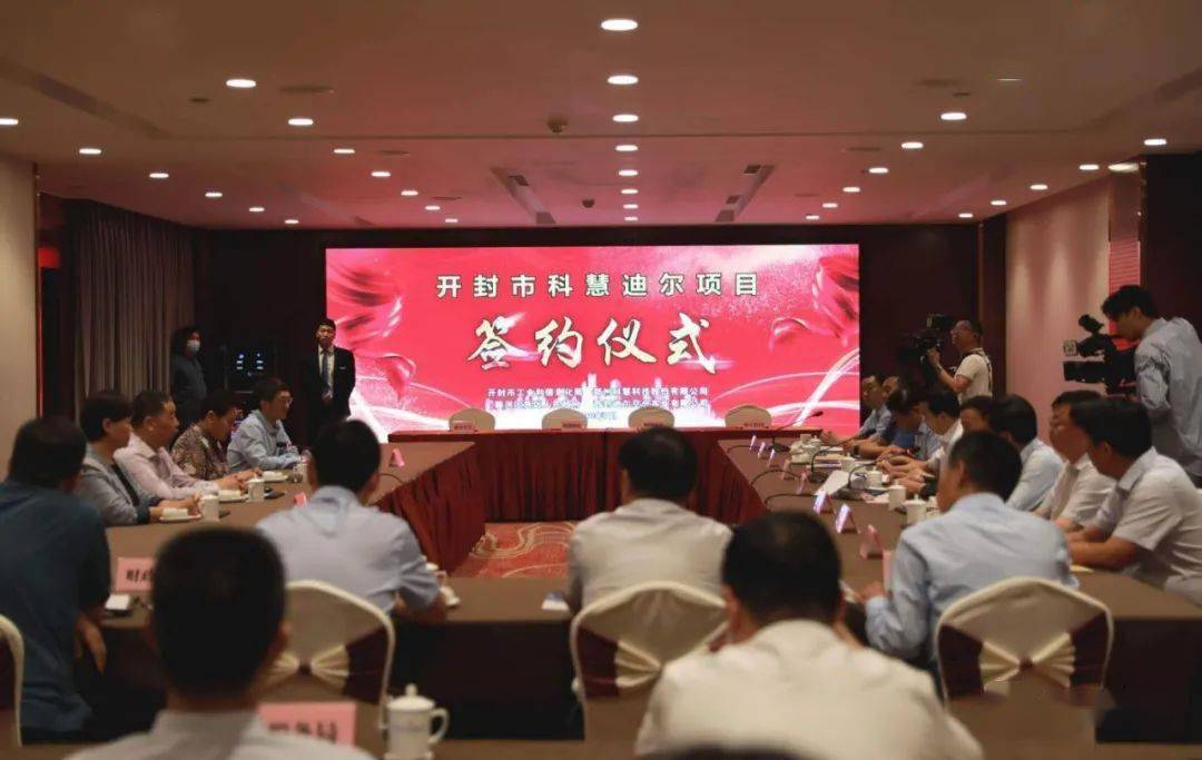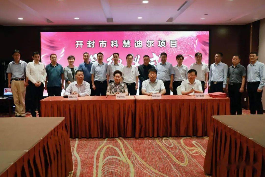 在与会领导共同鉴签下,市工信局、顺河回族区政府、郑州科慧科技有限公司、开封迪尔空分实业有限公司签署了协议。